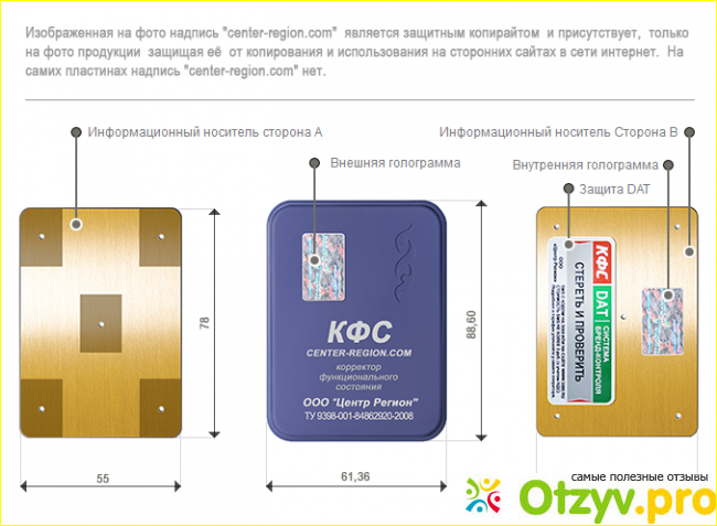 Собственно, почему созрел данный отзыв? Одна моя родственница, уже дама в возрасте, добрейшей души человек, увлеклась этими самыми корректорами функционального состояния. Она их себе накупила штук пять, не меньше. И в Москву на семинары этого Кольцова ездила, и чуть ли не молится на эти свои кфс-ки, прикладывая их не только к больным местам, коих после 60 лет накапливается немало, но и кладет их на провод стиральной машины, якобы для уменьшения расхода электроэнергии. Спрашиваю, засекала ли, точно уменьшает? Отвечает, что нет, но она в это верит, ей так рассказали в Москве на семинаре. Объясняю, что меньше паспортного значения не может стиральная машинка расходовать, в ответ получаю обиды, мол, не веришь - и не надо. Чудесного исцеления от временных, равно как и возрастных, хронических недугов, естественно, тоже не происходит. Давление по-прежнему высокое, скачет на погоду, варикоз тоже никуда не делся, сердечко пошаливает, лекарства все равно нужно употреблять. В последнее время еще и сахар подскочил, уж не знаю, пыталась ли она его своими кфс-ками как-то понижать или нет. Кульминации этот острый момент достиг, когда данная, очень уважаемая мною родственица, надумала в мое отсутствие сбивать моему ребенку высокую температуру этой штуковиной вместо того, чтобы дать нормальное жаропонижающее средство - парацетамол или там нурофен в сиропе. Тут уж у нас с ней возник крайне неприятный разговор, после которого я полезла в интернет изучать данный вопрос, а она осталась при своем мнении, рьяно защищая своих маленьких прямоугольных идолов.