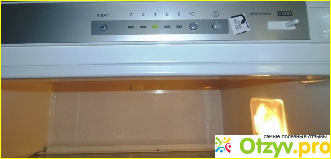 Панель управения холодильника спрятана за дверцей холодильной камеры, ее не видно, если эта дверца закрыта. На этой панели можно регулировать температуру, а так же включать и выключать холодильник.