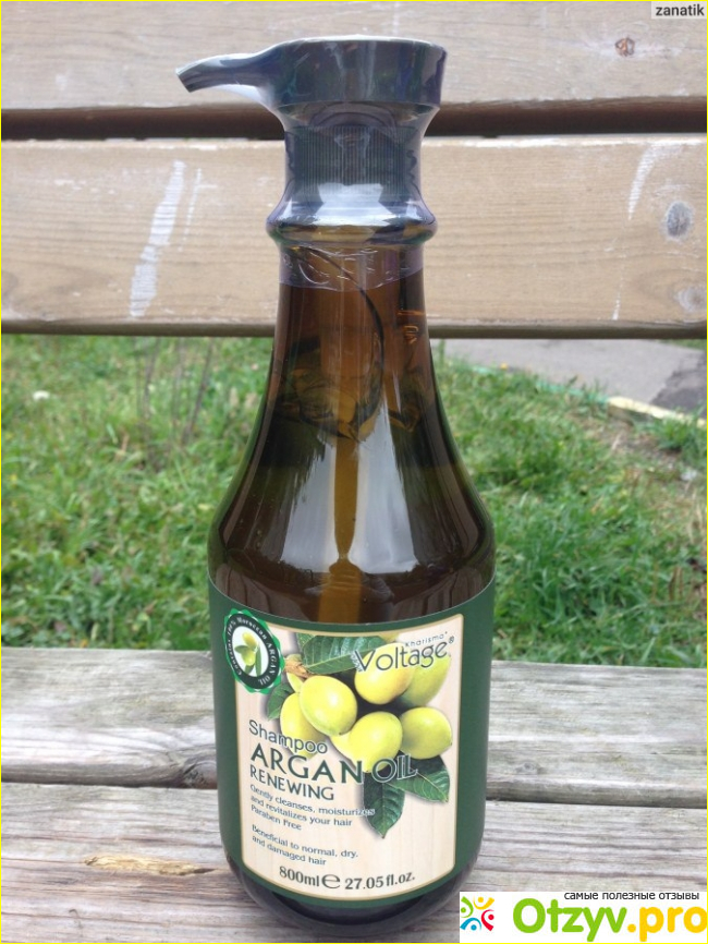 Этот шампунь идет восстанавливающим и в нем содержится масло арганы. Об этом покупатель может прочитать на бутылочке сзади. Вообще вся информация на самой бутылке идет не на русском языке. Но на самой бутылке есть отдельная белка наклейка и на ней уже более подробно можно почитать о данном средства.