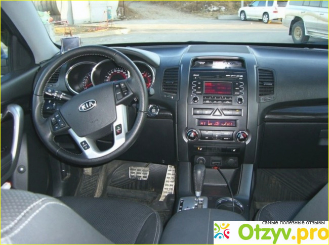 д. Сам автомобиль 2012 года выпуска. Машина второго поколения в итоге мне обошлась со страховкой в полтора млн. руб. Могу сразу заявить, что от машины я в полном восторге! По наворотам она не уступает ни одной японской машине! Машина чуть-чуть побольше чем Lexus RX. В салоне у Sorento очень просторно, никогда не будет тесно, что спереди, что сзади. Багажное отделение очень вместительное. Взял комплектацию без третьего ряда сидений, вместо них под дном багажника большой такой ящик под разнообразную поклажу. Тяги бензинового движка мне хватает, это конечно не Lexus, но и не тормоз, по тяговым показателям она находится на среднем уровне. Если бы раскошелился на дизельную версию, то там говорят с этим всё просто великолепно, динамика, разгон на высшем уровне. Но в принципе и эта меня устраивает. Ходовая прекрасно отрабатывает любую неровность, абсолютно всё без проблем. По шумоизоляции всё на высоком уровне, звучание движка на высоких оборотах едва слышно. Фильтр в салоне очень хороший, если на предыдущих моих машинах я салон чистил два-три раза в месяц, то здесь только раз, сам фильтр приходилось менять каждые 6-7000 км. пробега. В растрате топлива автомобиль не шокирует, по трассе примерно, держится в районе 10 л. Зимой с пробками может доходить до 17 литров, но по выходным в средний городской литраж 12. Установлен шестиступенчатый автомат, который можно переключать в ручной режим. Хорошая штука, если необходимо принудительное повышение передачи, что позволяет экономить топливо. Ручной тормоз реализован непривычно - он ножной! Пришлось какое-то время привыкать, но в итоге это оказалось очень удобным нововведением, никогда не забудешь снять с ручника машину). Педаль газа также сделана необычно, не висит как у многих японских автомобилей, а торчит из пола, сделана электронной, без тросика, реагирует хорошо и ни разу не тупила. Вполне адекватно работают датчики дождя в дворнике. Не один раз во время дождя замечал их работу, когда начинает накрапывать, они работают медленно, как только дождь усиливается, особенно это хорошо видно в летние ливни, то и они начинают работать как сумасшедшие). Компьютер штука полезная, показывает разную информацию - сколько километров остается до опустения бака , усредненный расход топлива и его расход в реальном времени двигающиеся полоской. Всегда можно увидеть сколько остаётся проехать на оставшемся бензине. Использование электронного ключа зажигания очень удобная функция, подошёл к машине кнопку на ручке нажал и если ключи в кармане - машина откроется. Сел за руль, поставил ногу на тормоз, нажал кнопку запуска и тачка завелась. Если не нажать на тормоз, то просто включится магнитола и прочее. Зачастую ключом можно вообще не пользоваться, а всегда держать его только в кармане. Система hands free помогает через смартфон голосом набирать любые команды вызвать контакт, подтвердить и спокойно разговаривать не снимая рук с руля. Тоже самое продублировано на руле кнопками. Магнитола звучит прекрасно, звук просто великолепный. Обзорность за рулём хорошая. Автоотключение фар тоже вещь удобная, когда заглохнет двигатель и вы откроете дверь водительского места они сразу погаснут автоматически, очень удобно, ведь без включенных фар никуда, они теперь по новым правилам постоянно включены при поездке. В общем к "корейцем" раньше относился с