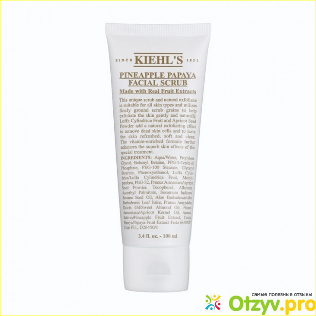 Очень нравится в таком косметическом средстве то, что он идет в своем составе на основе фруктовых кислот. Фруктовые кислоты ананаса и папайи качественно убирают с верхнего слоя лица пигметные пятная, эффективно очищают поры до скрипа и при этом все происходит мягко, так что кожа не травмируется, есть в составе специальные и натуральные мелкие частицы из пудры абрикосовых косточек, они хорошо скрабируют, мягко расщепляют, удаляют омертвевшие клетки, шелушение, кожа потом становится бархатистая и свежая, как шелк.