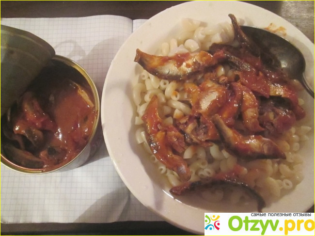 Банка легко открывается без открывашки, но ее нужно на всякий случай иметь поблизости, иначе кольцо может оторваться из-за резкого движения. Внутри лежат тушки рыбы залитые томатным соусом
