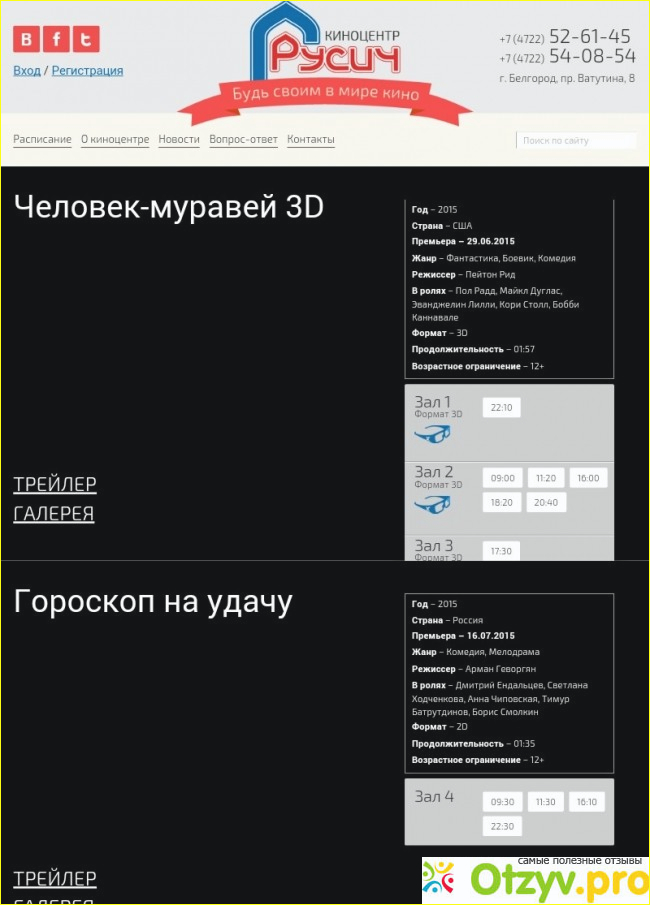 Перед тем, как пойти в кинотеатр, я всегда захожу на официальный сайт Русича, чтобы посмотреть расписание фильмов, на которые я хочу пойти. Вот так выглядит главная страница сайта кинотеатра:
