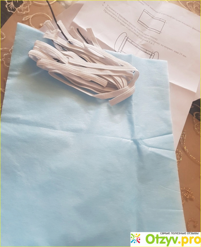 Когда я получила набор, то была неприятно удивлена тем, насколько тонкий материал предложен для пошива. Это нечто сродни самым тоненьким салфеточкам для уборки. Состав пористый, так что есть опасения, что эта тряпочка просто никак не поможет справиться с вирусными инфекциями. Но, все же купила и решила использовать, тем более что в моем регионе заражения практически нет. Шила по инструкции, которая вполне понятна, разобраться можно без особого труда. Для работы использовала швейную машинку. Шилось просто, держатель для переносицы нормальный, вставляется без проблем. Не очень понравились завязочки, резиночки. На лице мне с ними не комфортно.