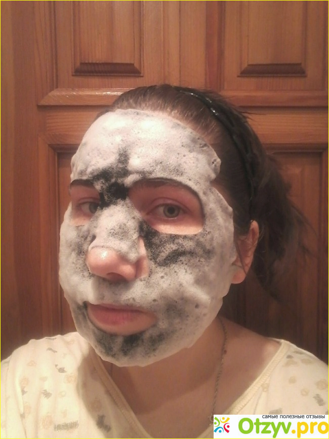 Уже вынимая маску из упаковки вы увидете пузырики, а после нанесения маски на лицо пузыриков будет все больше и больше, после истечения 15 минут у меня даже подсползать начала маска.