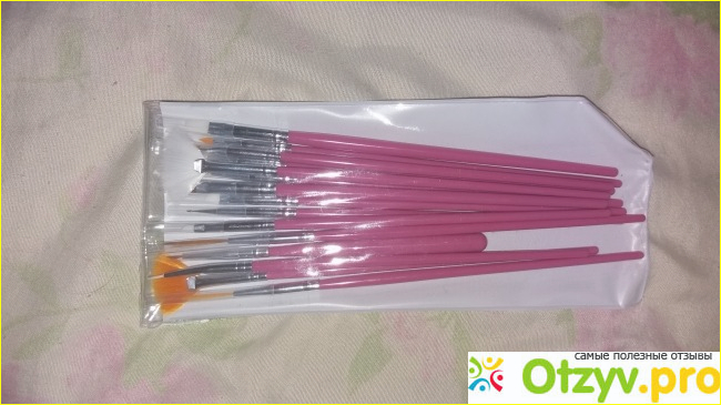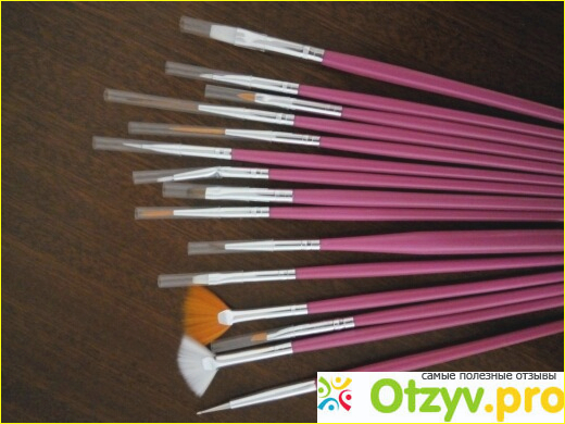 На сайте я искала очень долго потому что смотрела у разных продавцов и внимательно рассматривала картинки и читала отзывы покупателей, там были и хорошие и не очень, писали что не стоит покупать так как для работы вообще не годятся, а другие писали что очень рады такому приобретению, так как кисточки хорошо выполняют свою функцию. Но всё же я их заказала и очень долго ждала, а заказала я их всего за 112 рублей и там было 15 штук, разной длины и формой, каждая кисточка была для определенной работы. И вот когда я получила заказ, то была рада что кисточки мои пришли в хорошем состоянии и упакованы были очень хорошо, они были в прозрачном чехле с кнопкой и на каждую кисточку были надеты на голову силиконовые колпачки. В набор входят: дотс для того чтобы провести по гель-лаку разные узоры, две веерные кисточки для того чтобы убрать лишние блесктки на ногтях, также ими можно провести по гель-лаку и получиться красивый дизайн, кисточка для того чтобы отдельно нанести гель если это будет необходимо, кисточка для того чтобы прорисовать линию френча, кисточка для выкладки камуфляжа, две длинные кисточки для того чтобы нарисовать разные узоры. Сами кисточки хорошо качество, ворсинки не сыпятся когда их тянешь, лично я всех кистей так проверяла, нигде ничего не сломано, ни царапин ни трещин, и выглядят они даже не плохо, я заказала себе розового цвета, там были и белого цвета и ещё каких-то цветов но уже не помню точно каких. Кисточки сами из пластика а ворсинки синтетические это можно понять на ощупь. Для начинающих мастеров как и я которые только-только учатся делать дизайн с помощью кисточек отлично подойдут, а вот для мастеров с большим опытом работы я думаю не подойдут и не стоит им покупать такие кисточки так как они всё же слабые и не прочные по сравнению с дорогими оригинальными кисточками.
