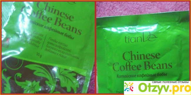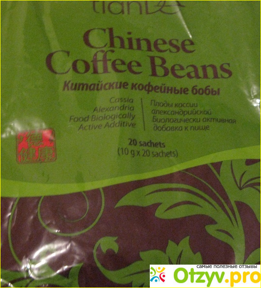 Китайские кофейные бобы употребляют для детоксикации организма, очищения, борьбы с лишним весом, отеками. К тому же эти бобы очищают печень, выводят токсины, нормализуют давление, и даже улучшают зрение. Так нам обещает производитель - китайская фирма ТианДе.