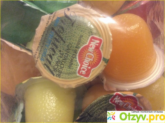 Итак, мое знакомство с данным лакомством произошло не так давно. Я купила пачку данных конфет весом в 450 грамм в веганском магазинчике в спб. Обошлось мне это в 150 рублей. Достаточно дешево по современным меркам. Тем более если учесть, что много таких конфеток ты за раз съесть не сможешь, да и не захочешь. Собственно расскажу подробно о том, что они из себя представляют. Желе залито в маленькие пластмассовые формочки, что очень удобно и практично. Можно постоянно брать с собой пару штучек без опасения, что они растают или вытекут вам в сумочку. Единственный минус подобной упаковки в том, что когда вы открываете крышку сладкий сироп практически со стопроцентной вероятностью вытечет наружу и вы по-любому испачкаетесь. Поэтому лучше проткнуть крышечку и отпить сиропчик, после чего уже можно спокойно отрывать крышечку. Сами конфетки представляют собой желейную массу с находящимся внутри нее кусочком какого-нибудь фрукта. По сравнению с консистенцией желе он кажется достаточно твердым и это придает данным конфетам еще большую изюминку. Конфеты просто невероятно вкусные, сладкие, обладающие насыщенным фруктовым вкусом. При этом вкусов в упаковке достаточно много: манго, банан, слива, арбуз, кокос, дыня и еще целый ряд непереводимых названий))