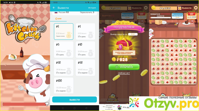 Музыка и звуки не понравились-выключила. Графика слабая. Главный герой повар коровка. Деньги игра действительно платит. Выводятся только на киви. Приходят за секунды. Перед выводом нужно заполнить четыре строчки: номер киви, номер телефона, ФИ и майл.