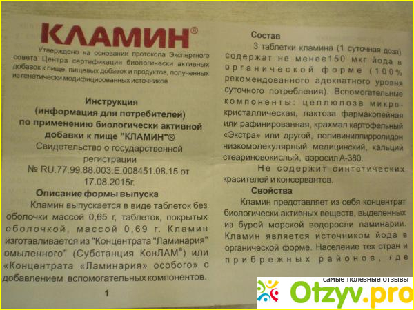 Были у меня не самые лучшие времена, когда приходилось сидеть на таблетках, сами понимаете, что это не самый лучший выход из ситуации, нужно как можно больше пить очищенной воды, соблюдать правильное питание и принимать витаминные комплексы. Кушайте хурму, в ней между прочим очень много йода содержится. Также не помешает и гранат, можно конечно же сок купить, он повышает гемоглобин, улучшает общее самочувствие человека. От себя хочу поставить БАДу Кламин заслуженную максимальную оценку по соотношению цены и качества, вам безусловно рекомендую его к покупке. Ну а теперь давайте перейдем к более подробному описанию препарата.