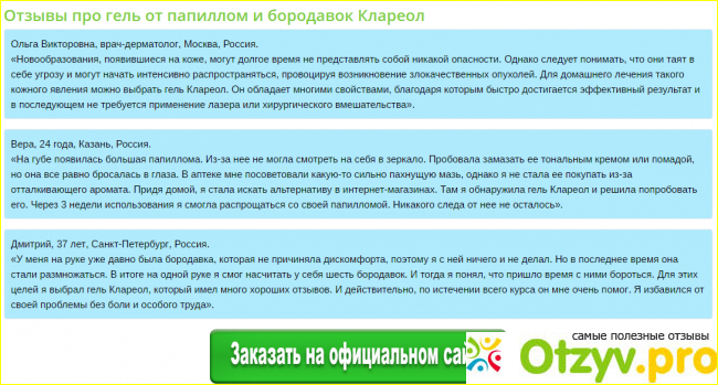 Пользоваться им очень просто. Очищаем кожу, где есть бородавка, просто водой, но если вдруг нет очищенной воды, то можно использовать и салфетки антибактериального типа. Дать высохнуть полностью этому участку кожи и нанести гель клареол. Втирать минут пять. массируя именно бородавку, чтоб гель проник как можно глубже. Такую процедуру проводить три раза в сутки на протяжении месяца. Этого будет достаточно, чтоб убрать бородавки, так что не ждите а заказывайте на официальном сайте, потому что уже многие довольны эффектом, а значит и Вы скоро будете в их числе.