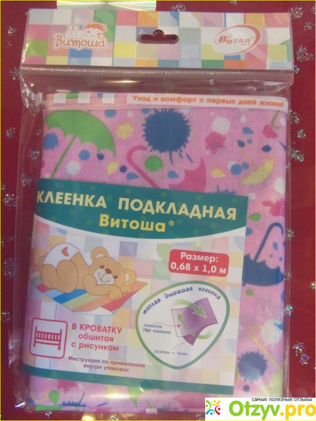 Что касается самой клеенки Витоша, закрыла она нужную часть кровати. Яркий рисунок радует, так как я люблю все яркое. Самое важное это то, что она не сползает если ребенок ворочается за счет тканевой основы. И не протекает, это самое важное конечно. Так как я сталкивалась с клеенками которые каким то чудом протекают.