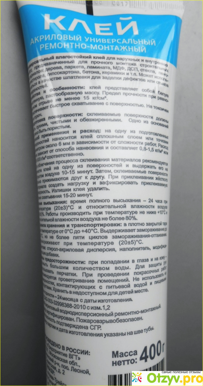 В-пятых, надежное фиксирование склеиваемых поверхностей. Выдерживает усилие 15 кг/кв. см.