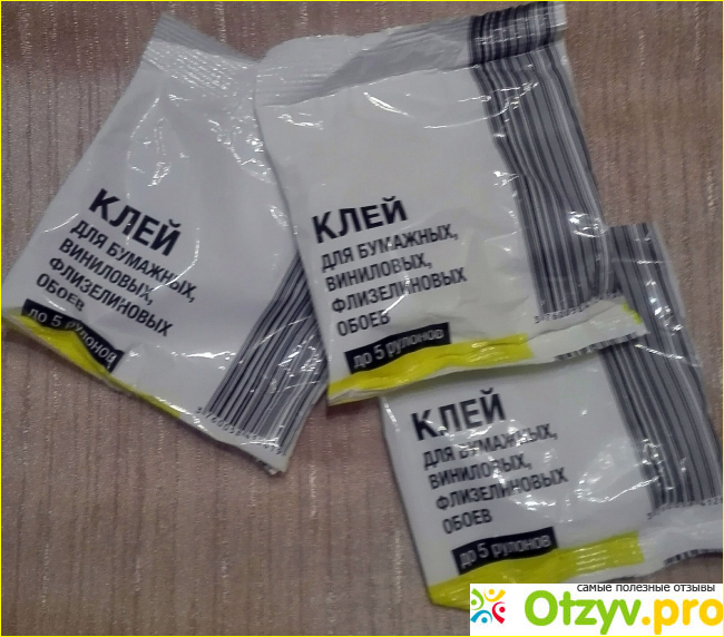 Большинство из нас занималось поклейкой и бумаги, и винила-флизелина, следовательно, прекрасно понимает, что это совершенно разные материалы. Посему крупные известные производители предлагают покупателям специальный товар – строго определенный для разных видов обоев. А тут УНИВЕРСАЛЬНЫЙ состав, да еще и за такие, можно сказать, копейки. Очень захотелось посмотреть, что это за чудо расчудесное, поэтому и схватила несколько пакетиков.
