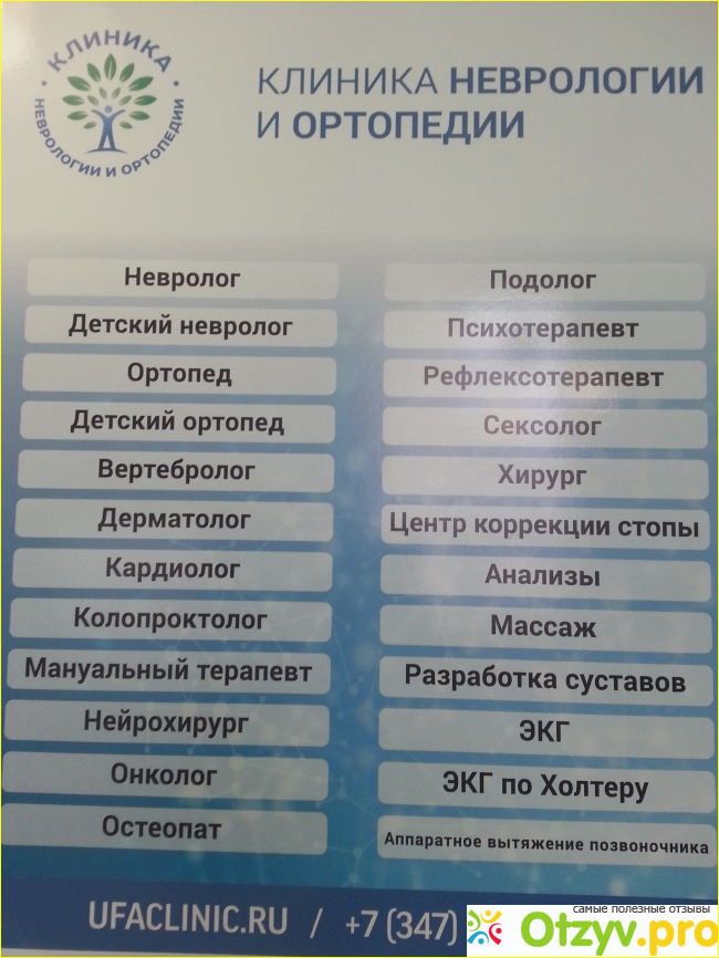 Здесь же и информация об оказываемых услугах, среди которых есть и такая редкая, как прием подолога (специалиста по болезням стопы).