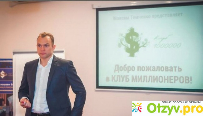 Итак, кто же автор этого громкого проекта, как "клуб миллионеров". Интересное название, но настолько ли интересный проект? Так что давайте начнем с информации о человеке, который это все создал. Максим Темченко, говорит, что он такой себе финансовый консультант, а также тренер, еще он является предпринимателем в нескольких сферах.