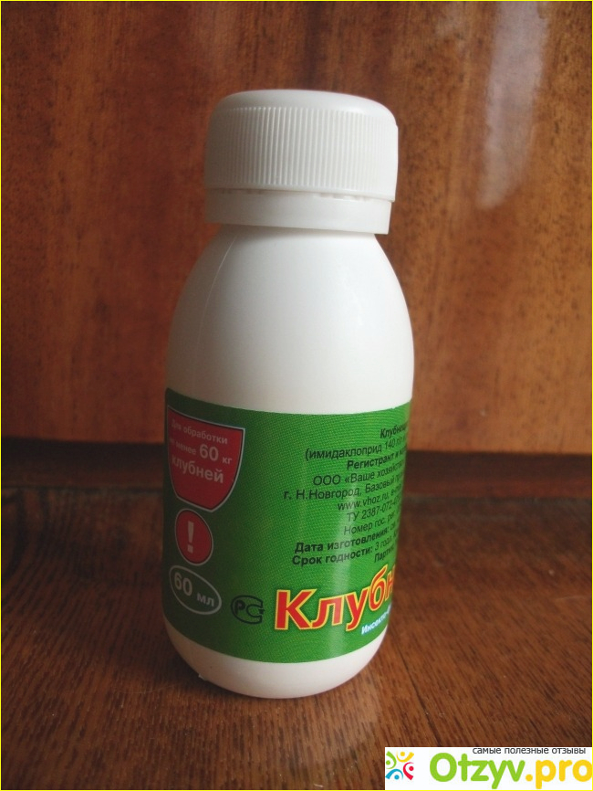 Флакон ёмкостью 60 мл. Содержимое похоже на красную гуашь. Флакона хватит на 60 кг клубней.