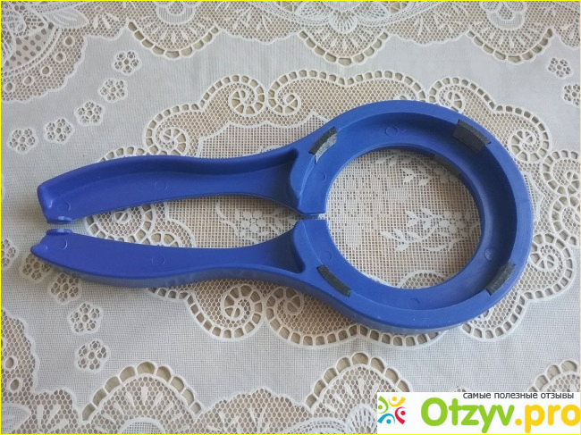 У ключа 2 ручки, которые удобные и их легко держать в руках. Ключ легок и прост в эксплуатации. Открывать винтовые крышки этим ключом легко и быстро, хотя все равно какую-то силу применять приходится. Для этого нужно ключ наложить на крышку банки таким образом, чтобы соответствующие выступы на ключе плотно охватили ее. В это время второй рукой нужно плотно держать банку, а ключ вместе с банкой нужно повернуть в нужную сторону. Крышка легко открывается и остается неповрежденной.