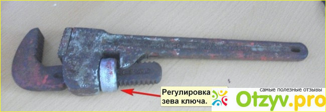 Он, в отличие от шведика, имеет всего одну ручку, а вторая часть прикреплена к ней при помощи резьбы, и ей регулируется диаметр захвата. Он сам будет "вгрызаться" в трубу, благодаря наличию зубцов на губках, и ни какого дополнительного сжатия ручек не требуется, им работают как обычным разводным.