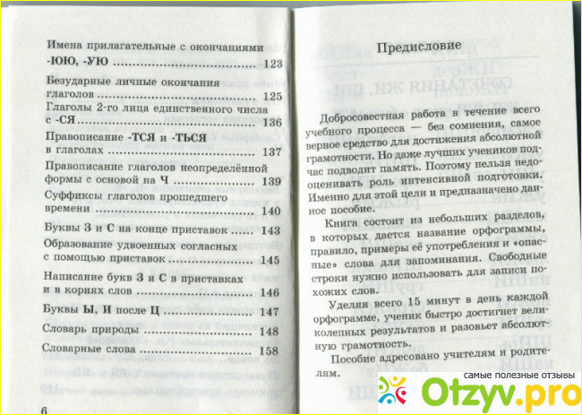 Книга хорошо структурирована: она разделена на несколько разделов, и каждый раздел имеет свое название - какая-либо конкретная орфограмма.