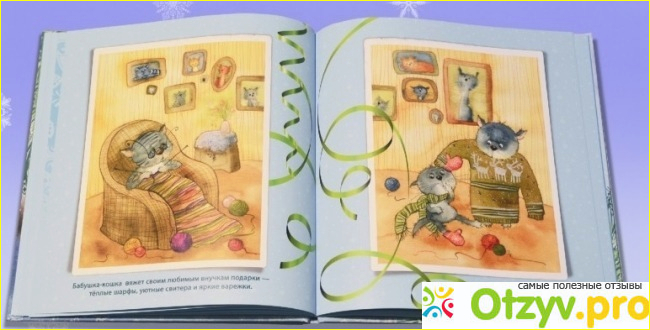 Такая книжка отлично подойдет маленьким деткам, так как текста в ней не много, но зато большие и красивые картинки, которые все детки очень любят. Каждая страничка в книге снежинками, новогодними елочными шарами и красивым дождиком - все это еще больше придает книге новогодней атмосферы. Но для тех, кто переживает, что текста мало - можно сочинять свои истории смотря на картинку, ведь это так весело. Когда вы вместе со своим ребенком начинаете придумывать что делает то или иное животное или детки.
