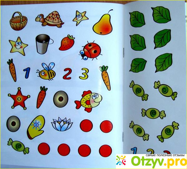 Задания в данной книге разнообразные: ребенок вклеивает наклейки, рисует, обводит цифра фломастером или по пунктирной линии.