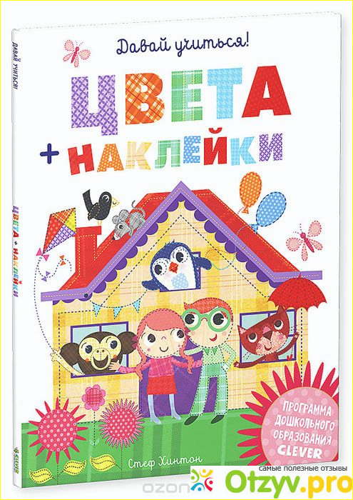 Также с помощью этой книги "Цвета + наклейки", вы можете развивать фантазию ребенка, пусть он описывает и рассказывает, что он видит на картинке, что там происходит, может ребенок сможет придумать свою маленькую историю.