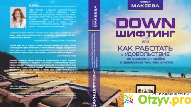 В своей книге Софья Макеева, рассказала об уже сложившиеся сложившимся опыте дауншифтеров, причём реальных героев, о том как сложилась их судьба. темы это конечно интересно и даже привлекательные, даже для той категории людей, которые в силу своей профессии, возраста, никогда не воспользуется этой возможностью, так жить и работать.