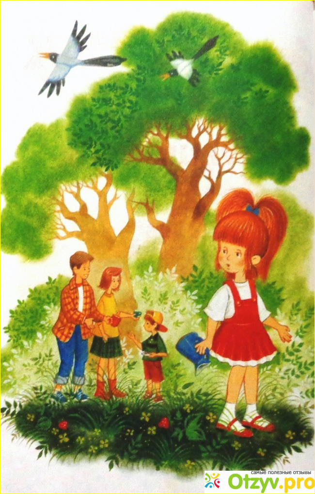 Взрослый сразу смекнёт, что собирать землянику Жене будет не во что. А ребёнок, всего скорее, вместе с Женей восхитится подарком и будет наслаждаться чудесными, сказочными картинами летнего леса, когда мелодия волшебной дудочки разбудила всё живое вокруг. И не только ягоды буквально высыпали на полянку, но и бабочки, стрекозы, птицы обрадовались чудесной музыке.