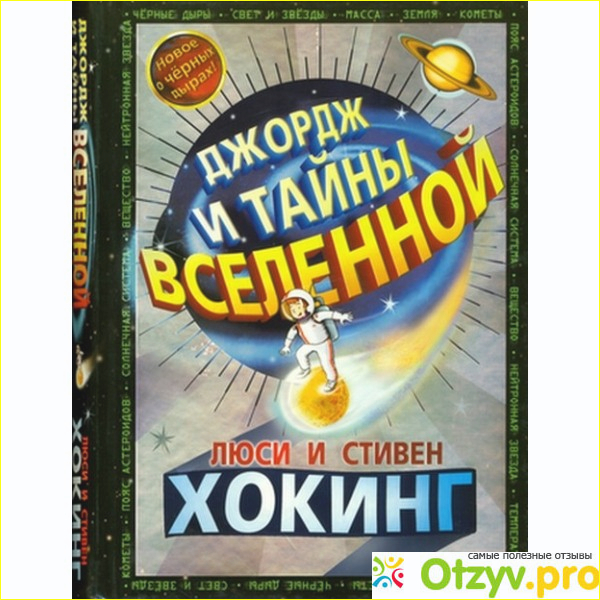 Естественно, как может не заинтересовать эта книга? - "ДЖОРДЖ И ТАЙНЫ ВСЕЛЕННОЙ"??? я лично читала ее с упоением! Это фантастика с элементами научного, создателями которой выступили астрофизик, популяризатор рауки астофизики - Кристоф Гальфар и знаменитый астрофизик Стивен Хокинг. Плюс к ним присоединилась дочь Стивена Хокинга – Люси. Они писали о приключениях главного героя – Джорджа.