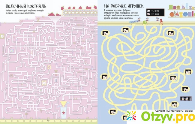 В этой книжке содержится целых шестьдесят разных заданий для ребенка. Причем все задания или как их еще можно назвать головоломки все разные и интересные. Благодаря им мы с сыном в какие только путешествия не отправлялись и какими героями только не были. Причем все задания и лабиринты построены именно таким образом, чтобы они постепенно усложнялись. А в конце книжки вы можете найти так же правильные ходы ваших лабиринтов.