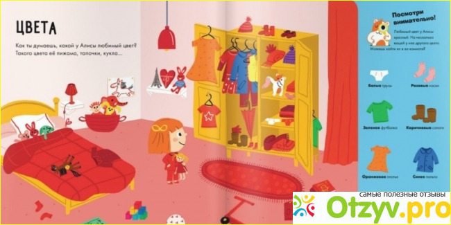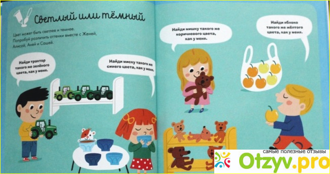 Мы пробовали сначала искать все красные предметы, затем синие. Потом начали их вслух называть с малышом... в общем, даже без заданий эта книга таит в себе столько интересного и полезного для развития малыша, а уж если говорить про сами задания...
