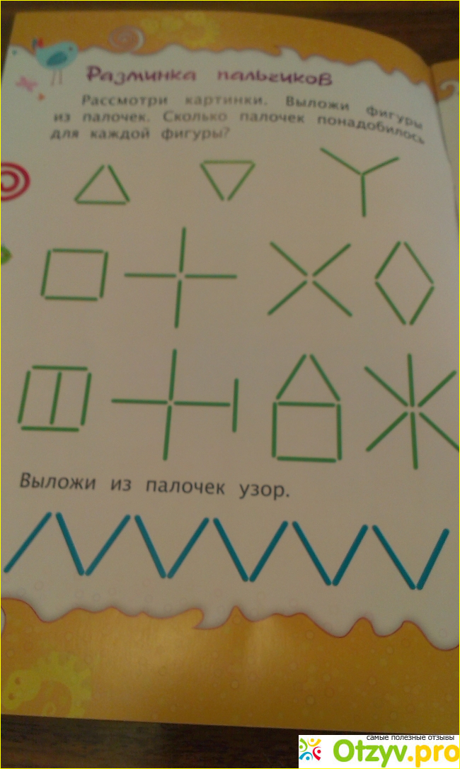 1) Задания с палочками: необходимо выложить фигуры из палочек по образцу.