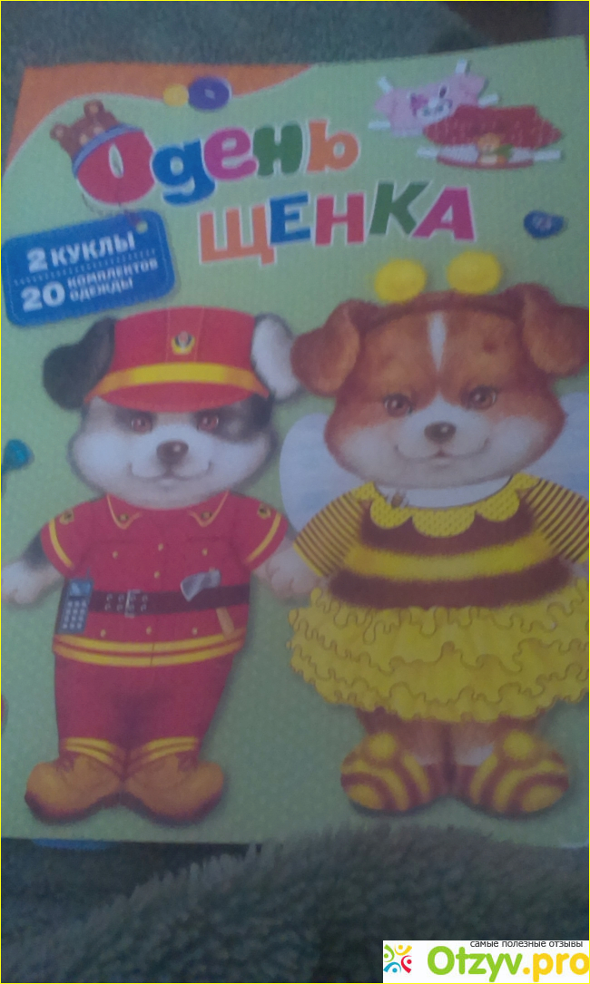 Даже самые маленькие девочки любят наряжать своих куколок в разные наряды. Увидем в магазине не обычную книжку, с куклами в виде двух больших собак и комплектами одежды к ним, подума, что моему ребёнку это может быть интересно. На выбор было две книжки " Одень щенка" и " Олень котёнка".