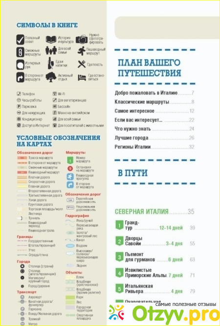 Книга изначально разбита на разделы вводные, углубленный осмотр всех частей страны и полезная информация для вас. В первом вы сталкиваетесь со всем тем, что я упоминала ранее - кроме классических маршрутов путешествия, обязательно уточняются все нюансы перемещения по стране, чтобы не только вам было комфортно, но и всем, кто встретится на вашем пути. Вторая часть попыталась в себе собрать краткие описания частей Италии (север, юг, центр) и места, которые просто необходимо посетить. Конечно же, это все не просто в виде рассказа, ер и с предоставлением маршрутных веток. Ну и последняя часть являет собой полезную информацию для водителей (и не только) -путешественников