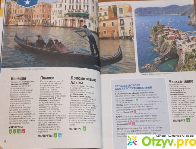 Рассмотрела свою покупку основательней только дома. Не люблю я, конечно, мягкие переплеты, но в целом он не такой хлипкие, как встречается у других книг. В книге много ярких иллюстраций, качественных фото, описаний к ним, поэтому, как уже ранее говорила, это не просто скучный путеводитель по основным места, но и интересный, пусть и краткий очерк о стране, которую хочется посетить. В данном случае это Италия.