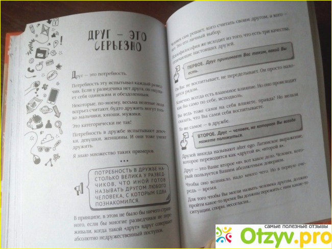 Впечатление после прочтения данной книгиЭта книга должна быть у подростка всегда по другой, так как даются важны советы, хоть и очень простые. Ребенка который не читает книги, уж вряд ли заинтересует. Книга очень понравилась, советую ее купить родителям подростков, так как она поможет наладить отношения ребенка в семье и в школе, станет отдушиной ребенку. В книге написано, что ребенку с 13 лет можно уже читать ее, но возрастное ограничение издательства 16+, но могу сказать, что лет и с 14 можно дать почитать эту книгу подростку, младше не имеет смысла, ребенку будет скучно.