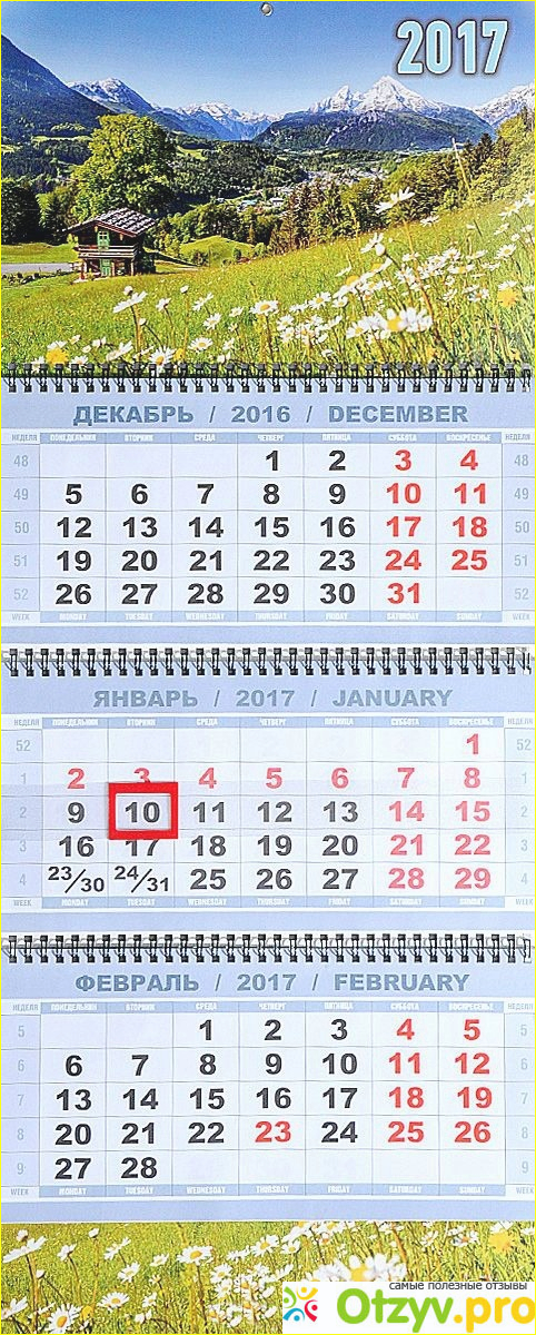 Итак, данный отзыв - это отзыв о календаре на 2016-2017 год с изображением гор и ромашек.
