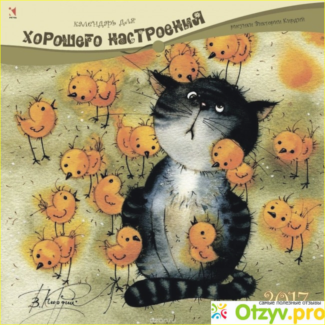 оторые можно записывать, как только появится идея в голове. Про праздники там тоже не забыли, под фигурно завитыми циферками написаны их названия. Фон не скучно-белый, а приятных пастельных оттенков, могут добавить цвета, если его вдруг стало не хватать. Про формат чисел я написала - очень удобный. Даже если человек не записывает дела или заметки, можно записать что-нибудь мотивирующее или вдохновляющее, а можно и просто так оставить. Ведь и без того на страничках можно найти своё воодушевление, по мне так самое главное преимущество - довольно тёплые иллюстрации с котиками на каждый месяц! Вот уж чего мне всегда хочется, так это тепла, и, думаю котики мне в этом помогут. Я люблю животных и здесь я имею возможность наблюдать душевные работы талантливой Виктории Кирдий. Я посмотрела остальные её работы и могу с увереннос