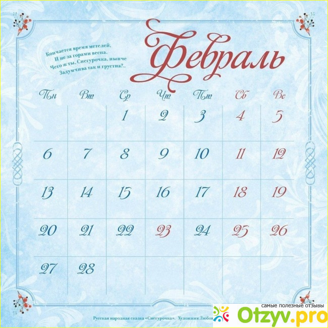 Кажется, будто бы изображение вот-вот шевельнется, сказка оживет - так мастерски нарисованы иллюстрации к данному календарю.