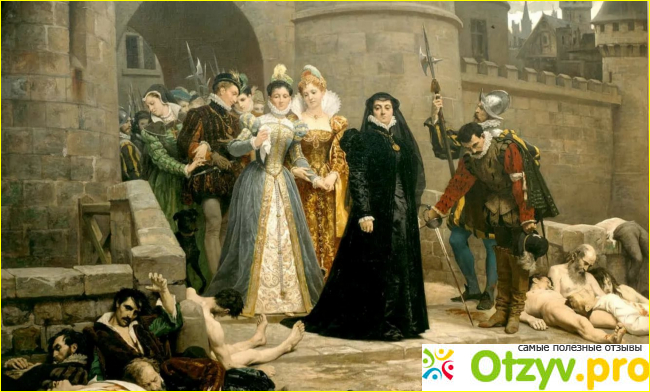 Та самая Мария Стюарт которую казнили, по версии Сабатини была причастна к убийству своего мужа. Способ был выбран можно сказать интересный. Дом в котором жил король подорвали бочками с порохом. Король выжил, пытался убежать но был настигнут заговорщиками и убит. Или НОЧЬ РЕЗНИ. Праздник святого Варфоломея. Убийство католиками гугенотов произошедшее во Франции.