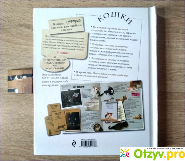 Множество разнообразных карманчиков, движущихся рамочек, потайных окошек, блокнотиков, секретов, открывая которые, ребенок с удвоенным интересом почерпнет знания о кошках и лучше запомнит их.