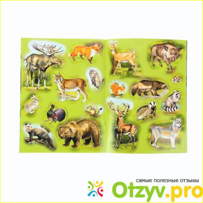 Книга действительно развивающая - называется она так не зря, так как пока ребенок рассматривает красочные яркие иллюстрации, изучает наклейки - он запоминает как выглядят животные, как они называются. И натуралистичность наклеек здесь как раз к месту - ребенок знает настоящий вид животного, а не мультяшный.
