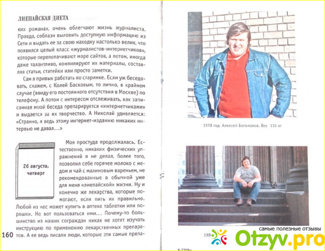 В книге есть интересная фотография с автором Александром Семчевым, где он весит 180 кг-день начала диеты 5 июля 2010 года.