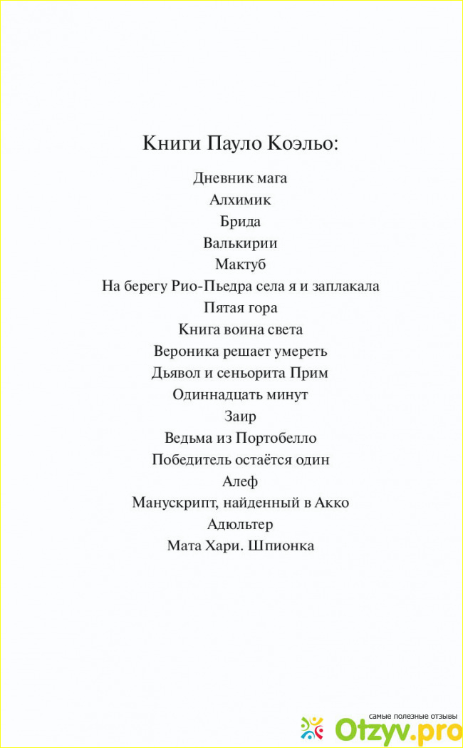 На изображении видно, фрагмент из Замечательная книга знаменитого бразильского писателя Пауло Коэльо, которая называется "Мата Хари. Шпионка", где еще список и других произведений автора:
