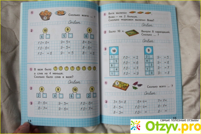 В данной рабочей тетради задания располагаются соответственно учебнику по математике за первый класс авторов М. И. Моро, С. И. Волковой и С. В. Степановой. У нас как раз такой учебник по математике выдали в школьной библиотеке. Однако, если у вас другие учебники, ничего страшного здесь нет. Данная рабочая тетрадка вас скорее всего тоже подойдет, так как тренировочные и развивающие упражнения в данной рабочей тетради широко раскрывают все основные темы и понятия, изучаемые на первом году обучения в младшей школе. Я знаю, что в соседней школе, где учится дочь моей подруги, у них прямо на уроках занимаются по этой рабочей тетради. Жаль, у нас такого нет, однако мы неплохо компенсируем этот проблем самостоятельны выполнением заданий на дому.