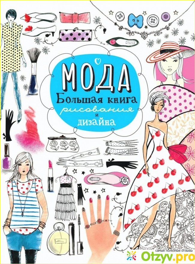 Это большая и абсолютно незаменимая книга для любителей модного рисования и дизайна от платьев и шляпок, до макияжа, украшений, причесок, узоров для вещей и дизайна витрины модного магазина.
