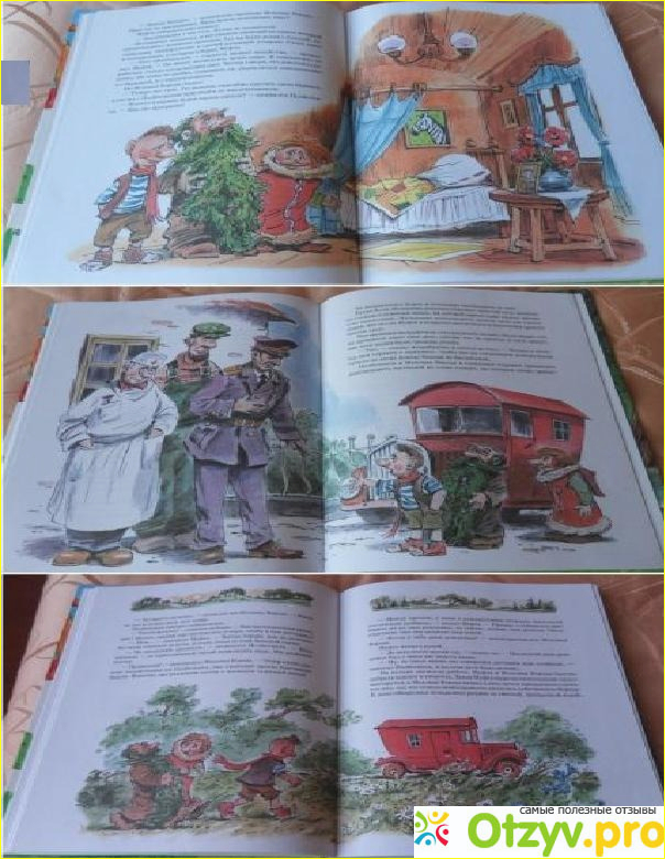 На изображении видно, как выглядит Книга известного писателя Эно Рауд, которая называется " Муфта, Полботинка и Моховая борода", сама она текстом без сокращений, красивыми рисунками, , что видна на фотографии внизу, хорошим форматом и то что она толстенькая в яркой твердой обложке и некоторые рисунки на столько большие, что размешаются сразу на два листа, на данных изображениях это видно: