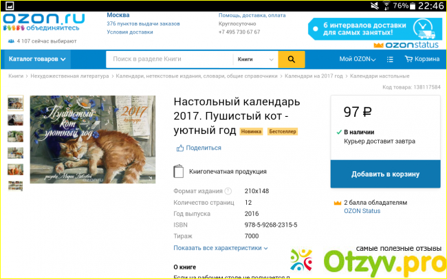 Цена такого симпатичного настольного календаря в данном интернет-магазине 97 российских рублей. И, знаете, я считаю, что для календаря такого формата и качества это совсем не дорого.