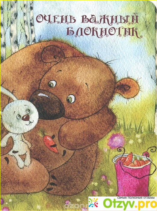 Лично я в продаже нашла два разных варианта этого блокнота, может конечно есть и какие-то другие, но мне пока они еще не попадались. На одном из блокнотов на обложке нарисован мультяшный мишка с зайчиком, а на другой нарисован котик. Как по мне то оба варианта довольно интересные. Не смотря на то, что блокнот выполнен в детской тематике его не обязательно покупать именно детишкам.